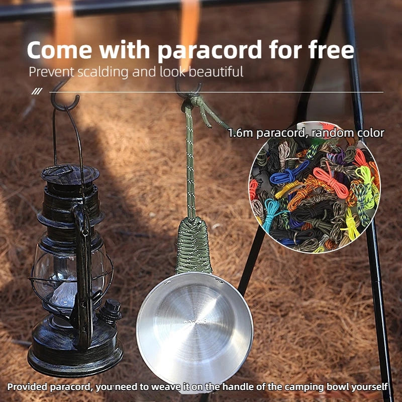 Durable & Lightweight Stainless Steel Camping Bowl with Bold Handle & Fun Outdoor Patterns (Random Design) - Perfect for Hiking, Backpacking & Camp Meals
