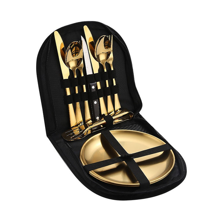 Lightweight Stainless Steel Camping Flatware Set with Dinner Plates & Portable Bag - Perfect for Outdoor Dining