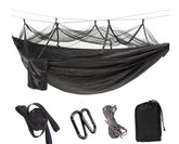 Experience ultimate relaxation and bug-free sleep in the great outdoors with our Ultralight 1-2 Person Parachute Hammock featuring a built-in Mosquito Net! Crafted from durable and lightweight 210T nylon shioze material, this portable hammock is perfect for camping, hiking, backpacking, garden lounging, and any outdoor adventure. Its spacious design comfortably accommodates one adult or can be used by two.