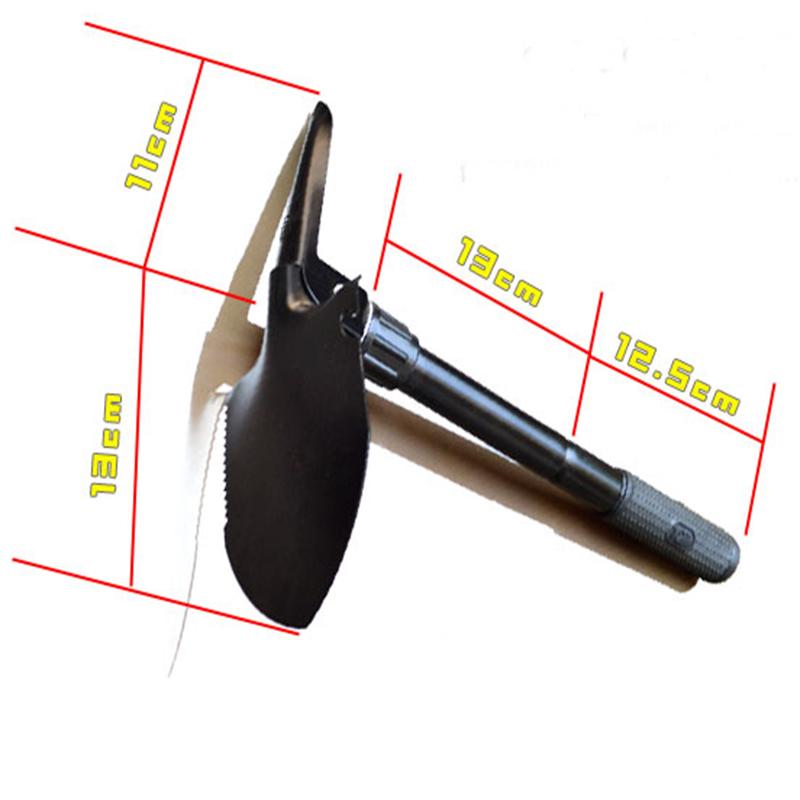 Functions: Shovel, Spade, Trowel, Pick, Saw Edge Folding: Yes Carrying Pouch: Included (Camouflage) Ideal for: Camping, Hiking, Gardening, Off-Roading, Emergency Preparedness