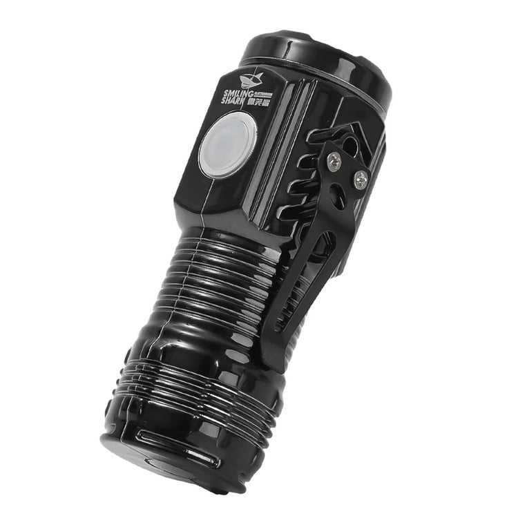 Smiling Shark Mini Powerful 3LED Flashlight - USB Rechargeable, 4 Modes, Magnetic Clip, Portable