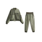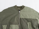 Confeccionada con tela dacrón resistente, principalmente poliéster, esta chaqueta ofrece una prenda exterior cómoda y elegante. Los diseños de parches de sarga de nailon le dan un toque distintivo, mientras que su corte corto ofrece un ajuste moderno y favorecedor.