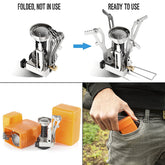 Construida con una base duradera de aleación de aluminio, una columna central de cobre y una placa de fuego y soporte de acero inoxidable, esta estufa está diseñada para soportar las exigencias del uso en exteriores. Su tamaño compacto, de tan solo 4 x 5,5 x 8 cm (más pequeño que una cajetilla de cigarrillos), la hace increíblemente fácil de transportar.