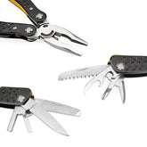 Crafted from high-quality carbon stainless steel, this multi-tool is exceptionally durable, highly rust-resistant, and built to withstand the rigors of camping in the Rockies, hiking near Calgary, tackling survival situations in Alberta's wilderness, and handling everyday tasks around your Calgary home. The innovative spring bearing design ensures smooth, labor-saving operation, while the ergonomic handle provides a comfortable and secure grip for extended use.