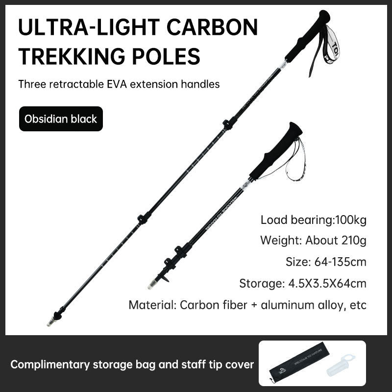 - Ultra-Lightweight Design: Carbon fiber and aluminum alloy construction minimizes weight (approx. 210g per pole).