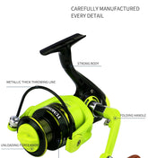 YUMOSHI Green OE Series Metal Wire Cup Spinning Reel: Versatile Fishing Wheel for Luya, Rock Rod & General Use - Smooth Feel, Powerful Performance - Folding Interchangeable Rocker Arm - OE2000-7000 Models Available (Likely OE3000 Shown)