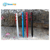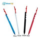 Secure your tent with confidence using the Shinetrip Adjustable Aluminum Alloy Tent Peg Set. This set includes six super-lightweight tent stakes crafted from durable aluminum alloy. The multi-tooth design provides a secure grip in various soil conditions, ensuring your tent stays firmly anchored during your camping adventures. Each peg features an adjustable touch point and a bright red pull cord for easy removal. These tent accessories are essential for any camping or backpacking trip.