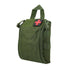 An army green tactical first aid bag with a red cross patch is shown against a white background. The bag has multiple zippered compartments, MOLLE webbing on the sides, and a carrying handle on top.
