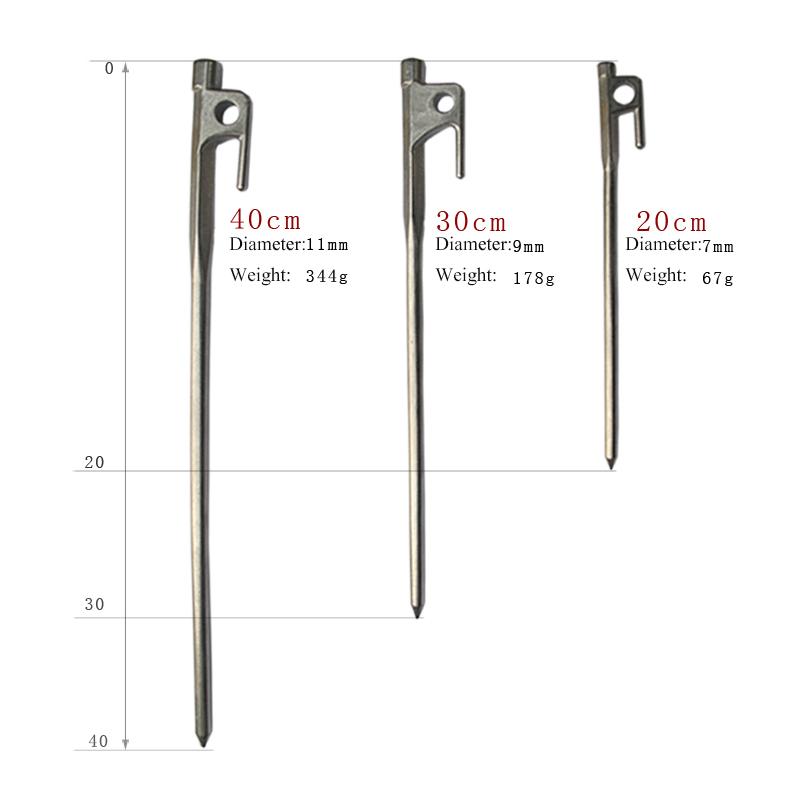 - Weight per Peg: 67g (20cm), 178g (30cm), 344g (40cm)