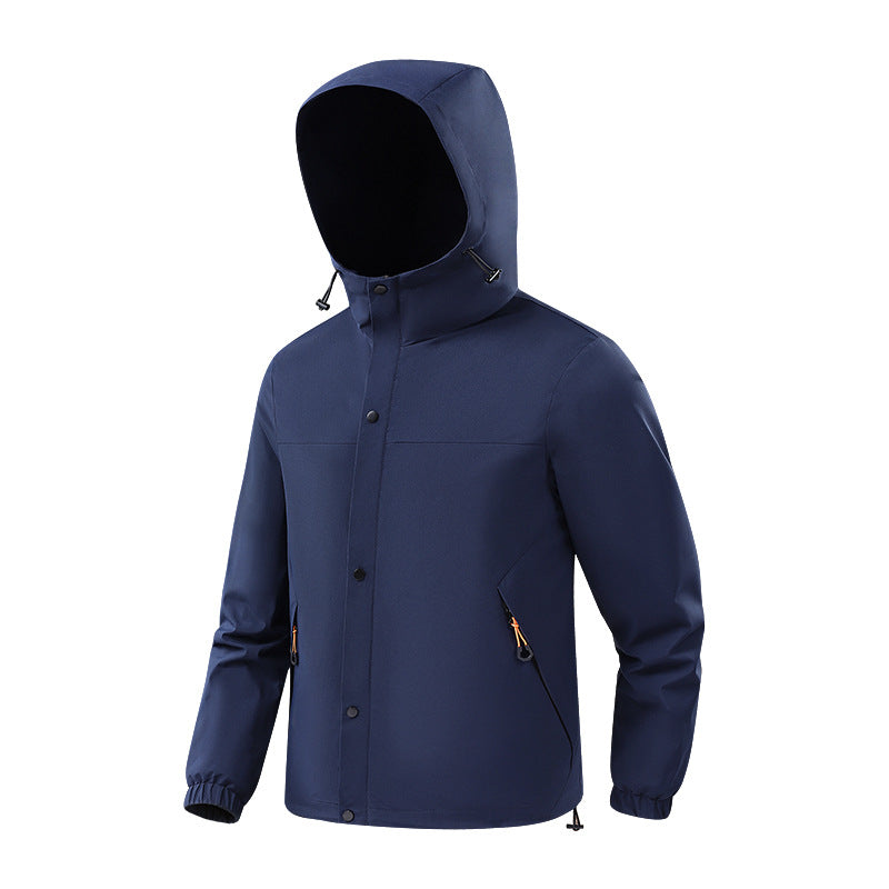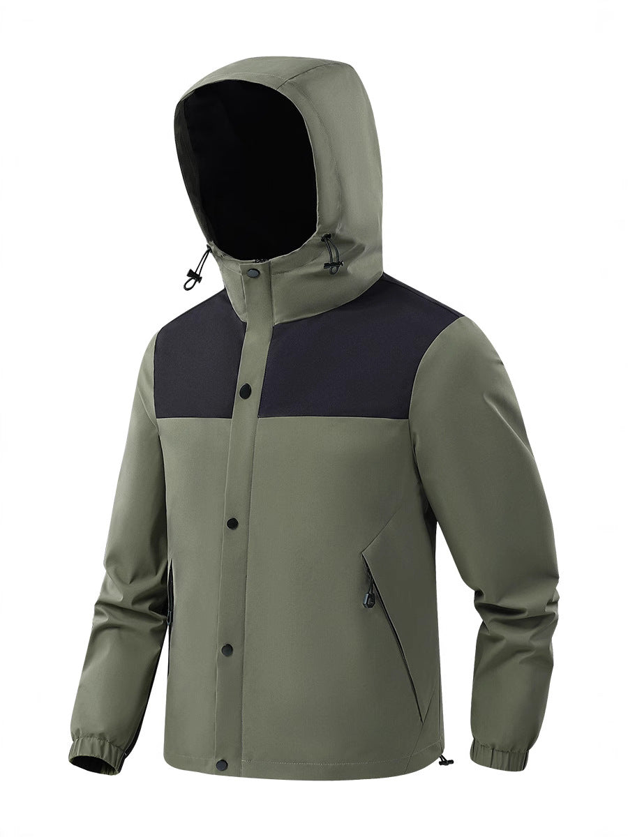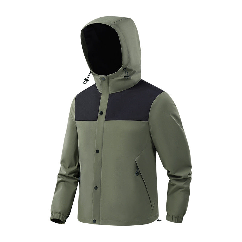 Featuring a practical hood and a secure zipper front placket, this jacket provides reliable protection against the rain and wind. The thin yet durable polyester fiber construction makes it lightweight and comfortable to wear. The design incorporates stylish color blocking accents and a regular clothing length and fit. Zipper digging pockets offer secure storage for your essentials. With its closed sleeves and straight hem design, this jacket is a functional and fashionable outerwear choice.