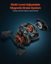 - Precision Magnetic Braking: Easily adjustable external brakes allow you to fine-tune your cast based on lure weight and wind conditions, preventing tangles.