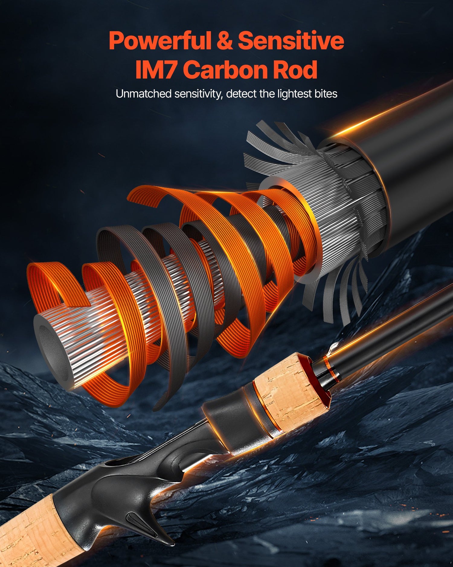 Elite IM7 Carbon Fiber Baitcasting Combo | 7ft Precision Casting Rod & 7.0:1 High-Speed Reel