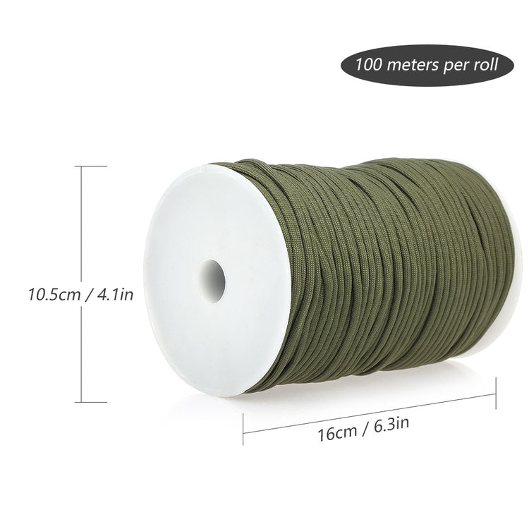 Made from a durable polypropylene/polyester blend, this 9-core paracord meets the stringent 550 military standard, ensuring its reliability and strength. Each spool contains 100 meters (approximately 328 feet) of cord. Whether you're a seasoned outdoor enthusiast, a survivalist, or a DIY crafter, this 550 military standard paracord is a must-have for your gear collection.