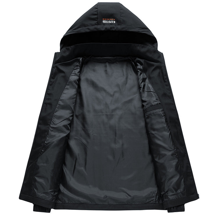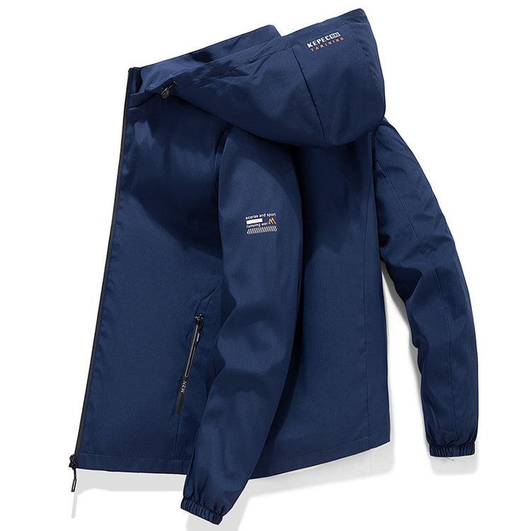 Stay comfortable and stylish in our Men's Hooded Sports Casual Windbreaker Jacket. This thickened outerwear is designed for daily life and features a breathable fabric to keep you comfortable. The flip collar adds a touch of style, and the hood provides extra protection when needed.