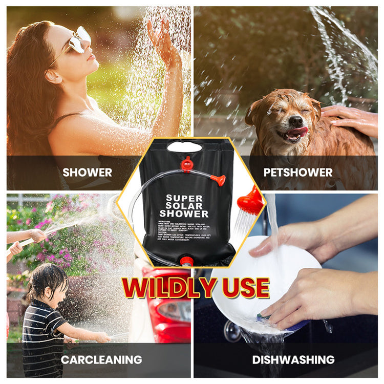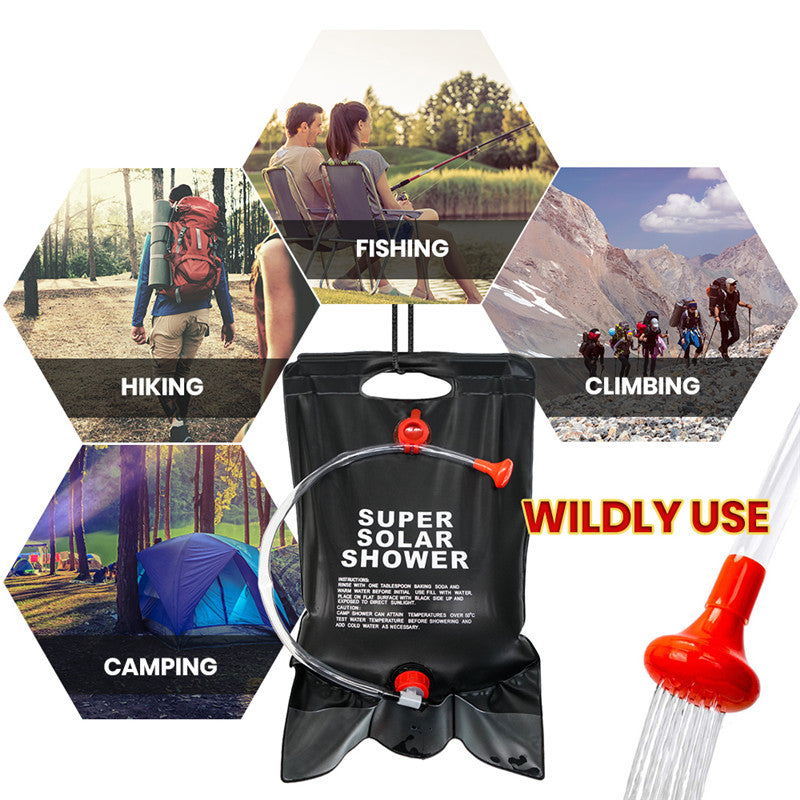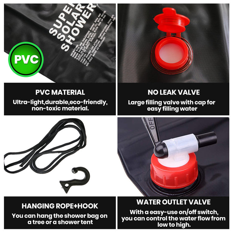 - Solar Heating: Dark PVC absorbs sunlight to naturally heat water for a warm shower without fuel.
