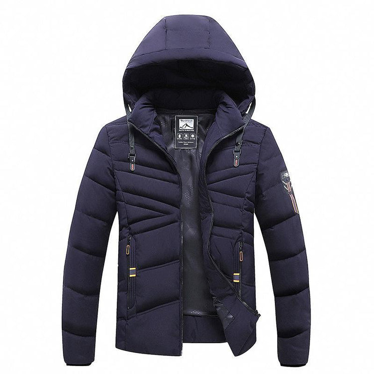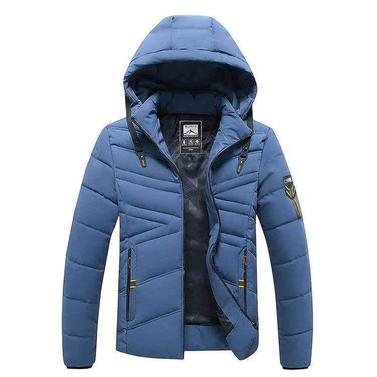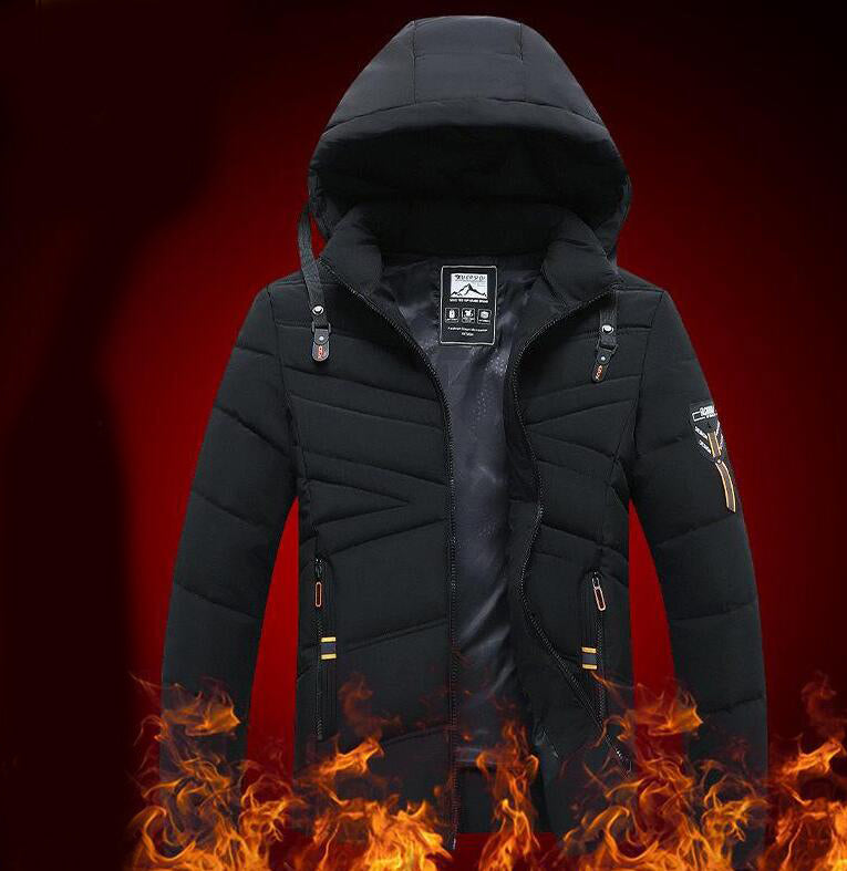 Men's Solid Color Hooded Polyester Cotton Coat