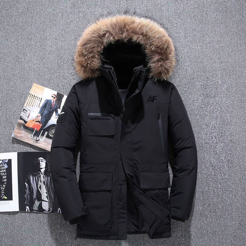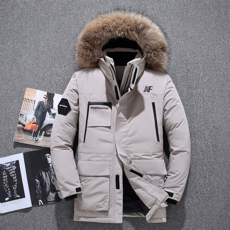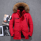 The Premium Men's Goose Down Jacket delivers elite-level warmth for serious winter conditions. Filled with genuine white goose down at 71-75% fill power, this isn't just another winter coat—it's professional-grade insulation that keeps you warm in the harshest cold. The medium-length design (65-80cm) provides extended coverage that protects your core and hips, while the hooded construction shields your head and neck from biting wind and snow.