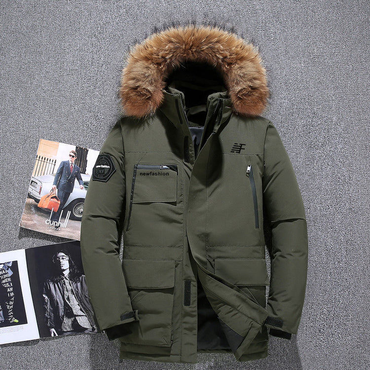 Premium Men's Goose Down Jacket - Thick Hooded Winter Coat with 71-75% Down Fill